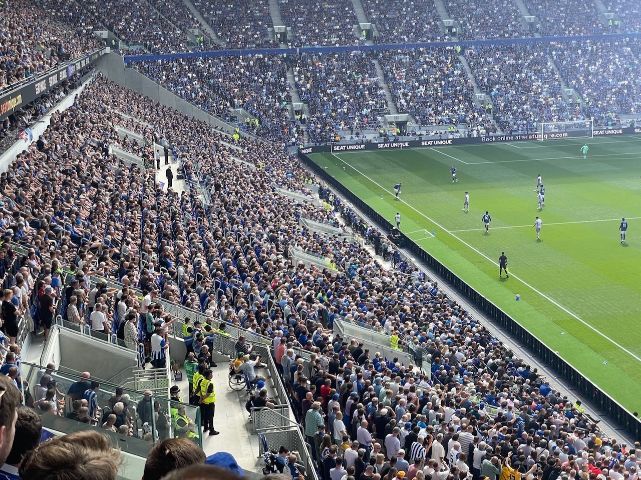 Goodison Park was home from 1892 until 2025, and starting this season it is Hill Dickinson Stadium, a 53,000-seater on a former industrial dock by the River Mersey. It is spectacular, with one stand that holds 13,000 people—inspired, they say, by the Yellow Wall in Dortmund, and certainly not by the roughly 13,000-seat Kop at Liverpool’s Anfield….